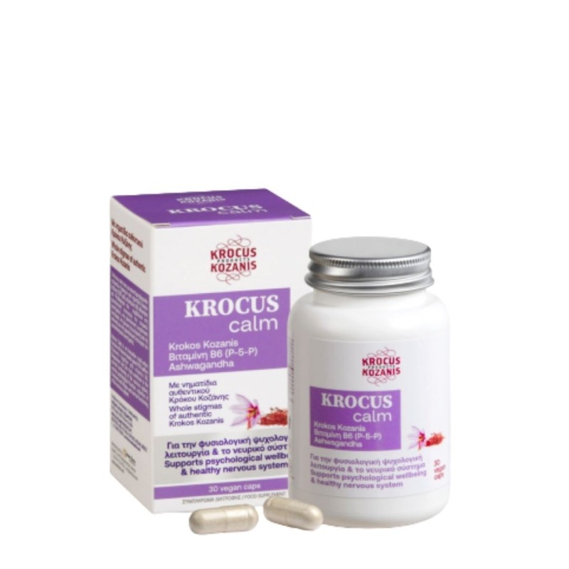 Krocus Calm est un complément alimentaire formulé autour d’un ingrédient d’exception : le safran grec Krokos Kozanis AOP, récolté sous forme de stigmates entiers (filaments), gage d’authenticité et de qualité.