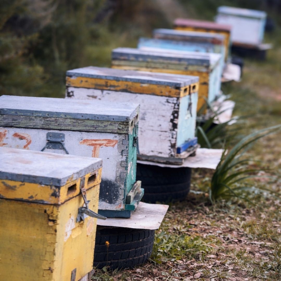 Yannis Vlahos n’a pas toujours été apiculteur. Il a d’abord été ingénieur. Puis, un jour, l’envie de se rapprocher de la nature devient plus forte que tout le reste. Sa passion le ramène là où il est aujourd’hui : au cœur des paysages messéniens, dans un quotidien rythmé par les saisons et les floraisons.